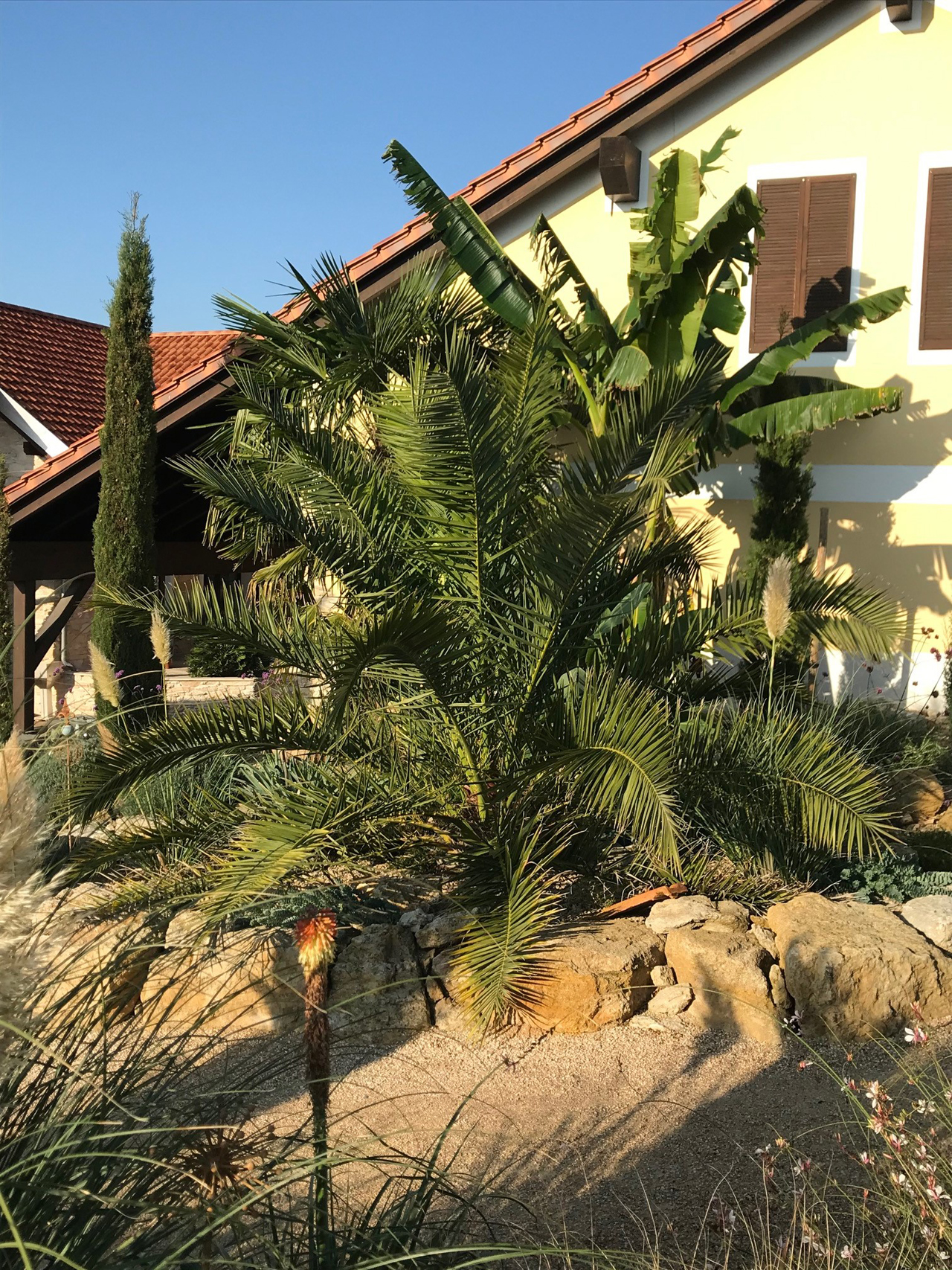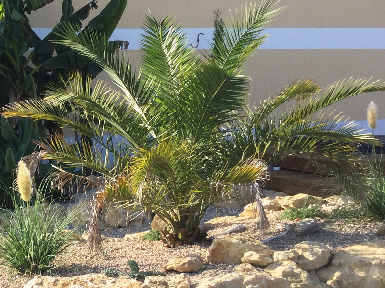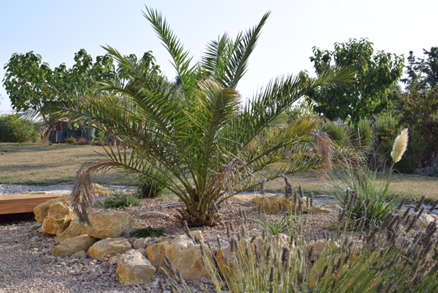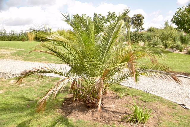 Phoenix caneriensis etwa 2Jahre nach der Auspflanzung, im August 2017:
