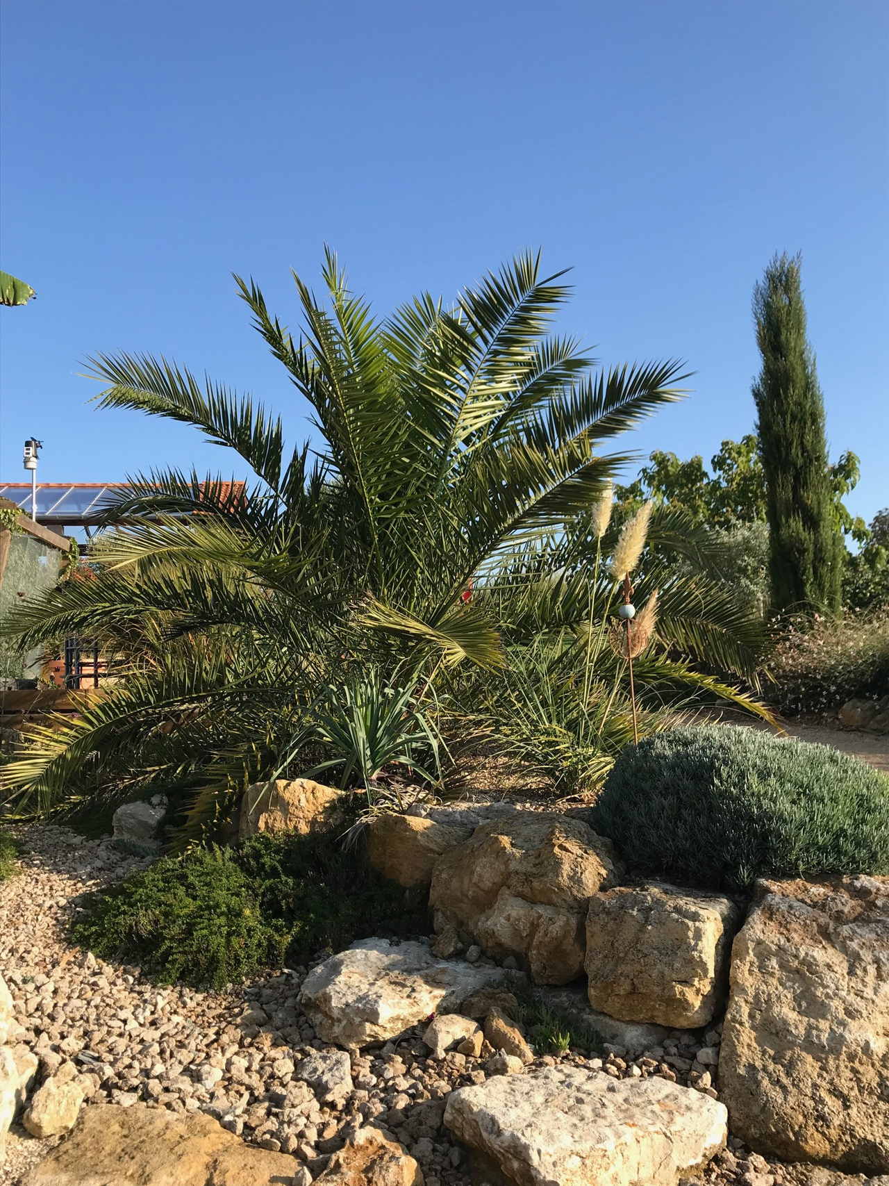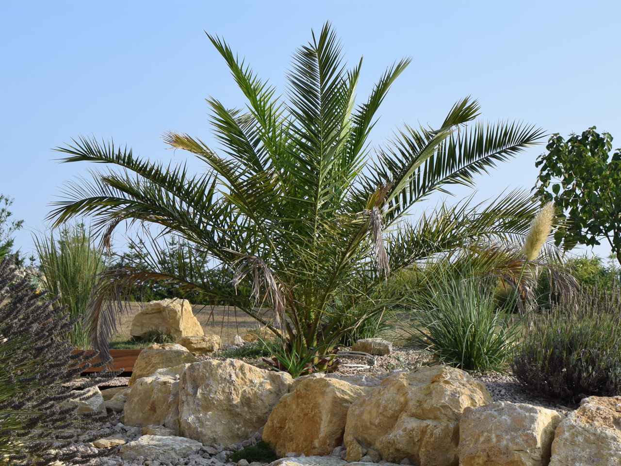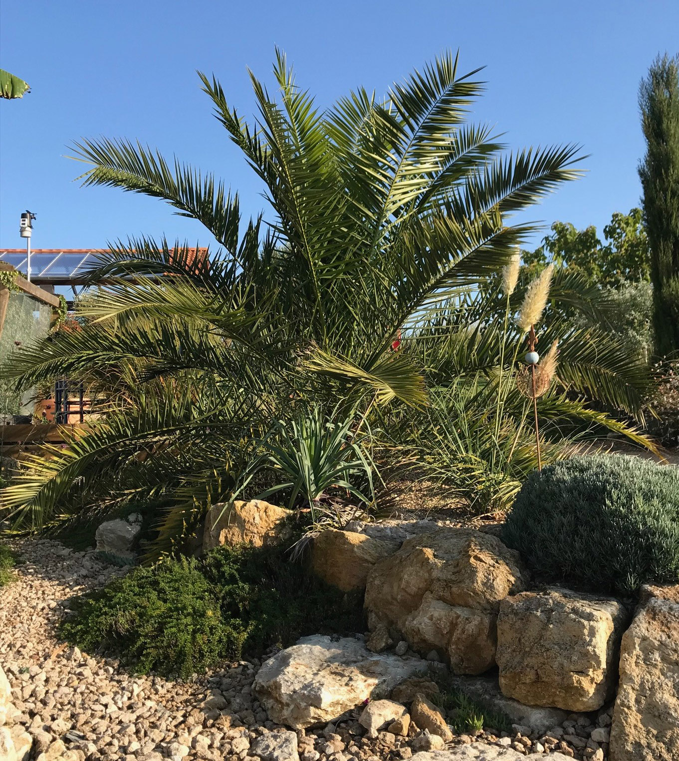 Phoenix caneriensis etwa 2Jahre nach der Auspflanzung, im August 2017: