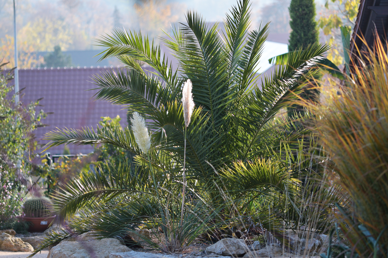 Dennoch gibt es auch genügend Gründe eine solche Palme im Garten auszupflanzen. Allen voran natürlich das imposante Erscheinungsbild der Palme, und die optische Bereicherung eines mediterran gestalteten Gartens. Phoenix can. ist im Mittelmerraum weit verbreitet und somit ein typischer und prägender Bestandteil mediterraner Gärten. Wer authentische Mittelmeeroptik für seinen eigenen Garten sucht, ist mit einer Phoenix can. also optimal beraten. Ein weiterer Grund ist der günstige Preis. Phoenix can. wachsen vergleichsweise zügig, können in Baumschulen schnell in Massen herangezogen werden, und kosten daher meist vergleichsweise wenig Geld. Wer mit einer mittleren Palme im Garten startet, muss für die Pflanze an sich, also nur wenig investieren. Der Verlust einer solchen Palme hält sich folglich also in Grenzen. Oftmals bekommt man auch schon größer gewachsene Pflanzen zu sehr günstigen Preisen von privat, da die Besitzer die Palmen nicht mehr im Kübel überwintern wollen, oder können. Ein weiterer Grund, der überdies auch für alle anderen Palmen oder Exoten gilt, ist das wesentlich bessere und gesündere Wachstum einer frei ausgepflanzten Palme, ebenso wie der damit verbundene geringere Pflegeaufwand, im Vergleich zur Kübelhaltung.
